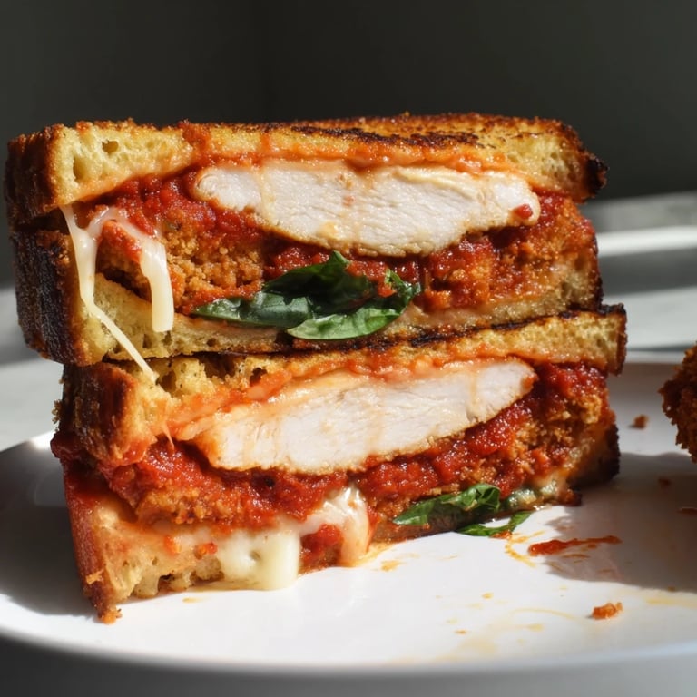 Save to Pinterest I was standing in my kitchen one rainy Thursday, staring at leftover marinara and a pack of chicken breasts, when my roommate walked in and said she was craving both chicken parm and grilled cheese. I laughed, then paused. Why not both? That night, we made the first version of this sandwich, and it was messy, indulgent, and exactly what we needed. It's been my go-to comfort food ever since.