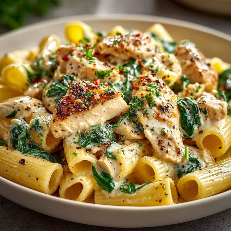 Save to Pinterest Creamy Spinach Chicken Rigatoni is my weeknight go to when I want big comfort with barely any effort. Tender pasta hugs every drop of a silky rich sauce while juicy chunks of chicken and fresh spinach keep things vibrant. This is one of those meals that brings my family straight to the table as soon as it lands.