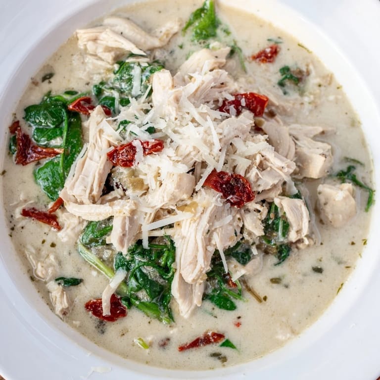 Save to Pinterest There's something about the way cream swirls into hot broth that makes me pause and watch, even when I'm in a rush. I discovered this Tuscan chicken soup on a chilly afternoon when I had rotisserie chicken, spinach, and sun-dried tomatoes scattered across my counter, and I realized they were practically begging to meet in a pot. The result was so unexpectedly silky and bright that I've made it dozens of times since, each time remembering why my kitchen always smells like comfort on soup days.