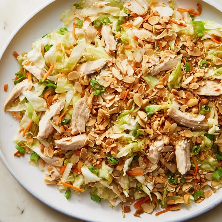 When my sister visits she cannot have tree nuts so I swap the almonds for roasted sunflower seeds and nobody notices the difference. The salad works beautifully with shredded brussels sprouts instead of cabbage for a winter version.