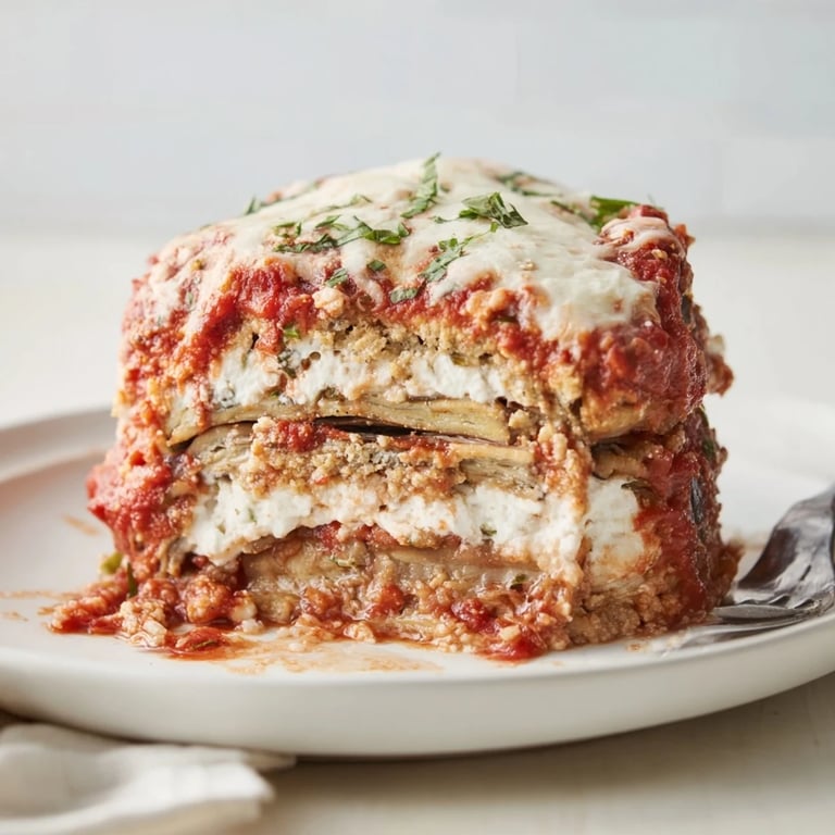 Save to Pinterest A comforting Italian-inspired casserole layering tender eggplant with rich tomato sauce, creamy ricotta and gooey mozzarella, finished with a golden Parmesan crust. Eggplant Parmesan Lasagna is perfect for family dinners or gatherings when you crave a hearty main dish that feels special.