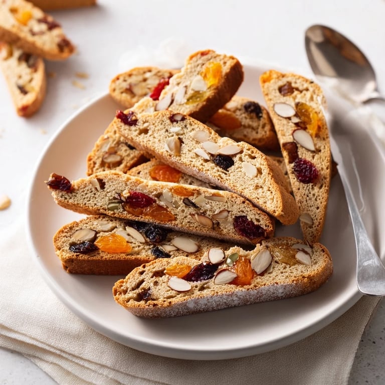 Thin, crunchy biscotti infused with festive spices, dried fruits, and nuts—perfect for gifting or sharing.