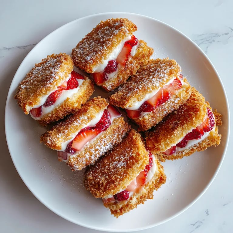 Save to Pinterest Crispy golden on the outside and filled with a creamy cheesecake center and juicy strawberries inside these fried strawberry cheesecake sandwiches are a treat that always disappears fast in my house I first tried these as a fun breakfast twist and now my family will eat them morning or evening as a snack