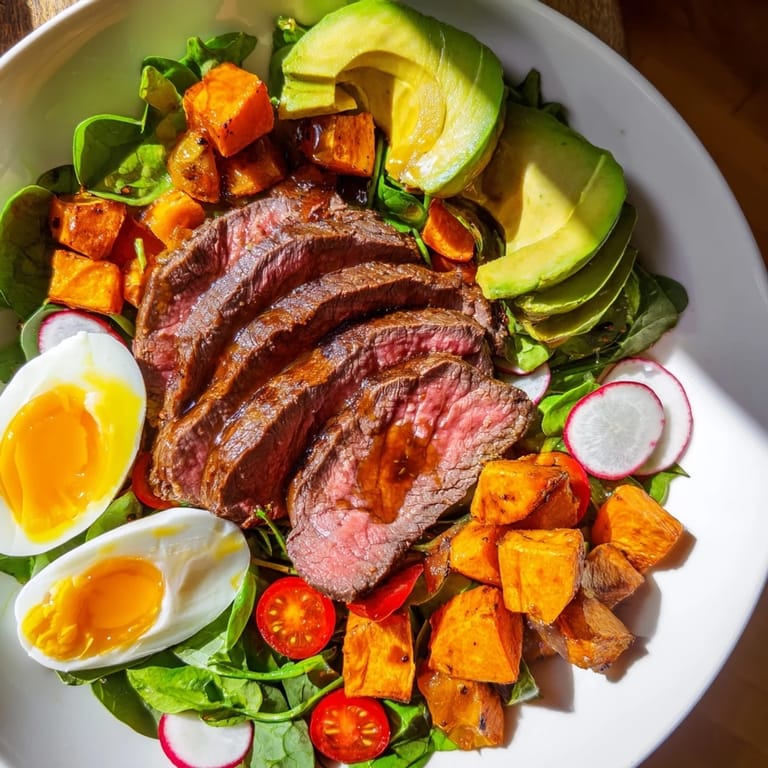 Save to Pinterest There's something about bowls that makes cooking feel less like a chore and more like an act of assembly—like you're building something intentional with your hands. I discovered this particular combination on a Tuesday when I had roasted beef, a perfectly ripe avocado, and the kind of hunger that demanded real substance. The moment that jammy egg yolk broke across the warm sweet potato, I understood why this bowl had become my go-to for days when I needed to feel both nourished and satisfied.