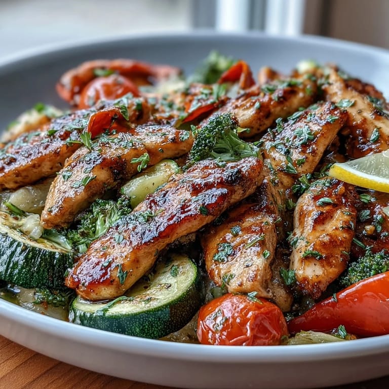 Save to Pinterest The first time I made this chicken and vegetable dish, I was lured in by the sizzling sound of veggies hitting a hot skillet. My kitchen smelled fresh and peppery with a pop of lemon in the air. There was something satisfying about watching bright colors mix together while the chicken browned—like painting a meal. I loved how quickly it came together after a long workday, leaving barely any mess behind. Even before the first bite, I knew it would earn a spot in my weeknight rotation.