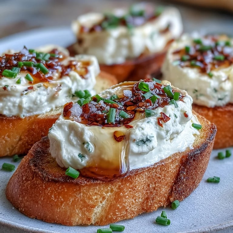 Save to Pinterest My neighbor brought these to a backyard dinner last spring, and I watched everyone swarm the platter before touching anything else. The contrast of tangy cheese against that sweet-spicy honey stuck with me all week. By the weekend, I had my own baguette sliced and ready, determined to crack the code. Turns out, it was simpler than I ever expected, and now I make them whenever I need something that looks fancy but comes together in under half an hour.