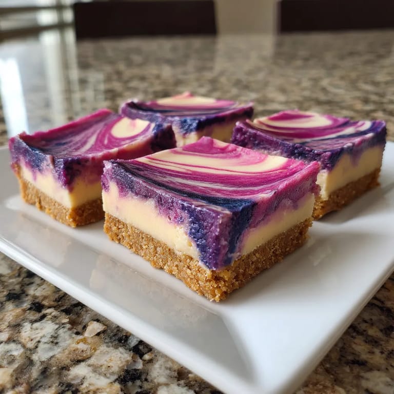 Save to Pinterest These enchanting cheesecake bars are designed for those days when you want a dessert that stuns both in flavor and visual magic. The oat biscuit base is buttery and comforting, topped with creamy butterfly pea-stained filling, and bright pink lemon swirls that shift color as you slice. Every bar feels like a slice of the galaxy—perfect for impressing guests or enjoying a bit of whimsy at home.