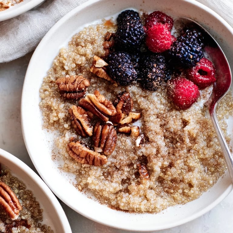 Save to Pinterest A warm, nourishing breakfast bowl featuring fluffy quinoa sweetened with maple syrup, toasted pecans, and a hint of cinnamon for a wholesome start to your day.