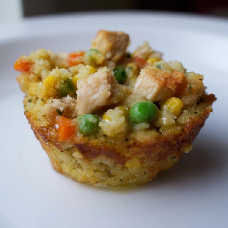 Save to Pinterest Savory, bite, sized muffins combining tender chicken pot pie filling with a fluffy cornbread crust, perfect for parties, snacks, or a fun dinner twist.
