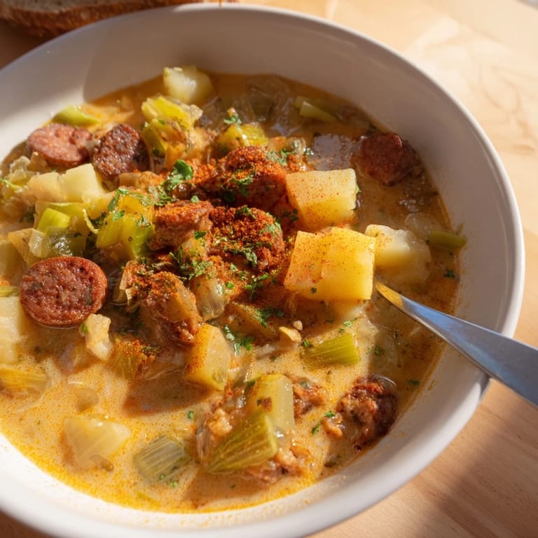 Save to Pinterest A hearty and flavorful soup combining creamy potatoes, tender leeks, and spicy chorizo for a comforting meal perfect for cool days.