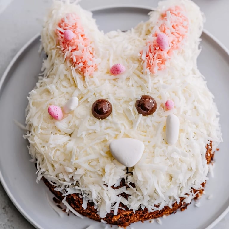 This delightful carrot cake features grated carrots, warm spices, and optional nuts or raisins, baked to moist perfection. Cream cheese frosting is generously applied, then decorated with shredded coconut, colored accents, and sweet details to resemble a spring bunny. The assembly involves layering and carving cakes to create face and ears, with finishing touches like marshmallows and candies adding charm. Ideal for festive gatherings, it pairs well with milk or tea and can be prepared ahead and chilled.