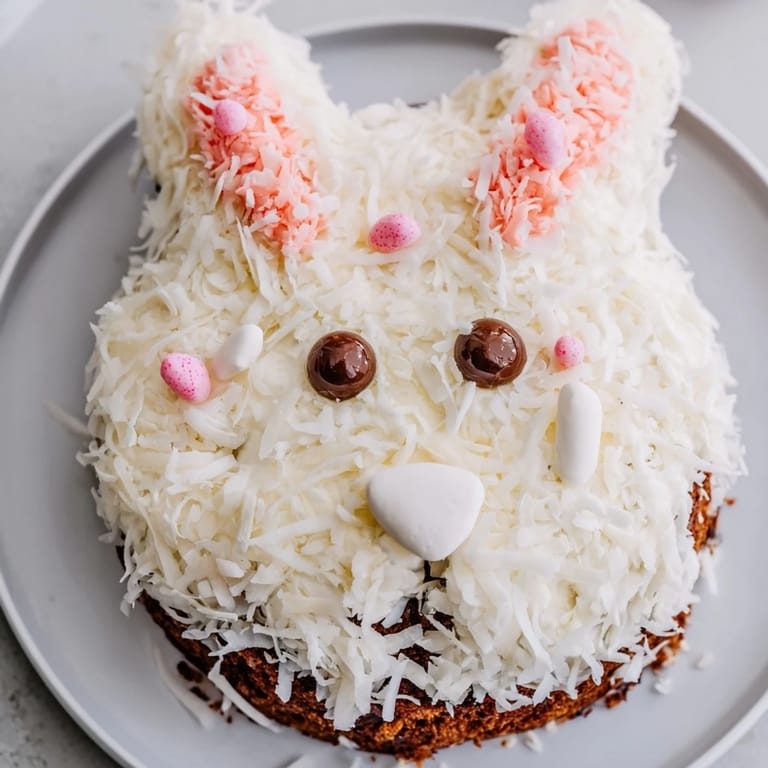 Save to Pinterest A whimsical, moist carrot cake shaped and decorated to resemble a charming spring bunny, perfect for festive gatherings and celebrations.