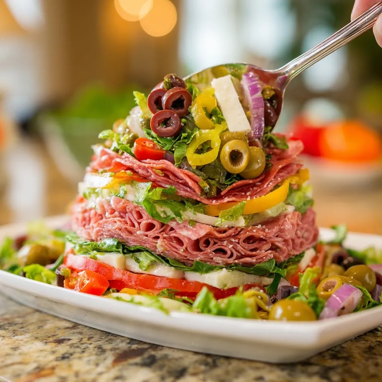 The muffuletta originated with Italian immigrants in New Orleans This salad honors those Sicilian roots while making the classic sandwich lighter and perfect for sharing You can taste the lively mix of cultures in every briny crunchy bite