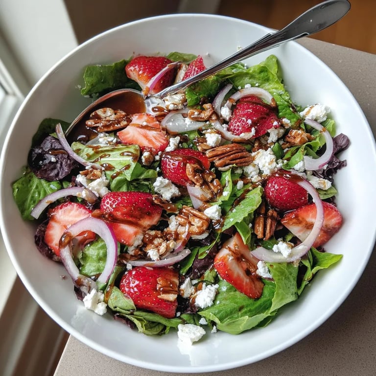 Save to Pinterest This strawberry feta salad brightens up any summer meal with its combination of juicy strawberries, creamy feta, and a tangy homemade balsamic vinaigrette. It is my go-to whenever I want something easy but still feels a little bit special for family picnics or quick lunches.