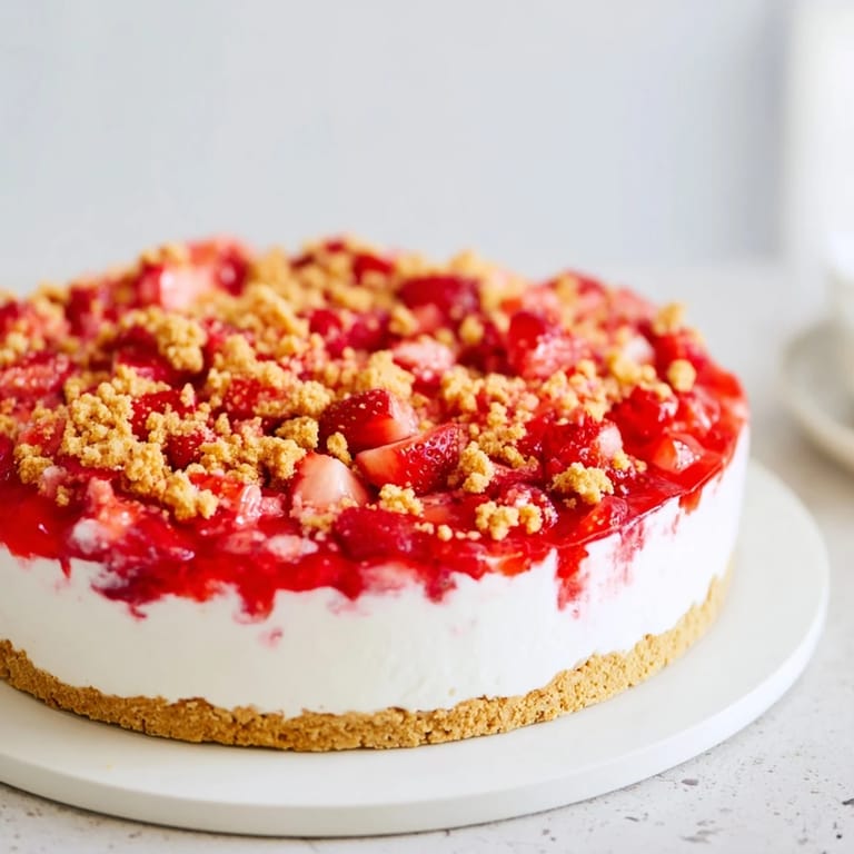 Save to Pinterest A luscious dessert that marries creamy cheesecake with the nostalgic flavors of strawberry shortcake, topped with a vibrant strawberry layer and a crunchy cookie crumble.
